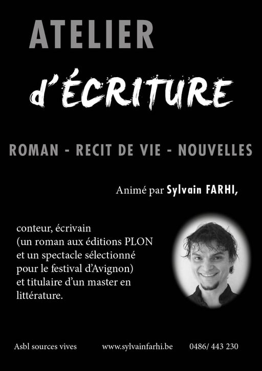 - Atelier d'écriture ADOS: 4 mercredis Horaire: 14h à16h. 2021-2022: nous contacter. Détails sur ce lien https://www.sylvainfarhi.be/ateliers-formations/atelier-d-%C3%A9criture-pour-ados/