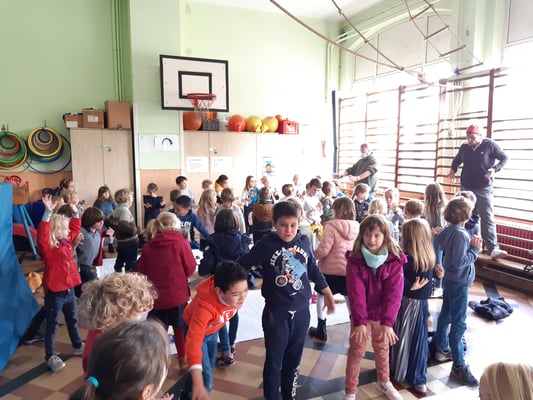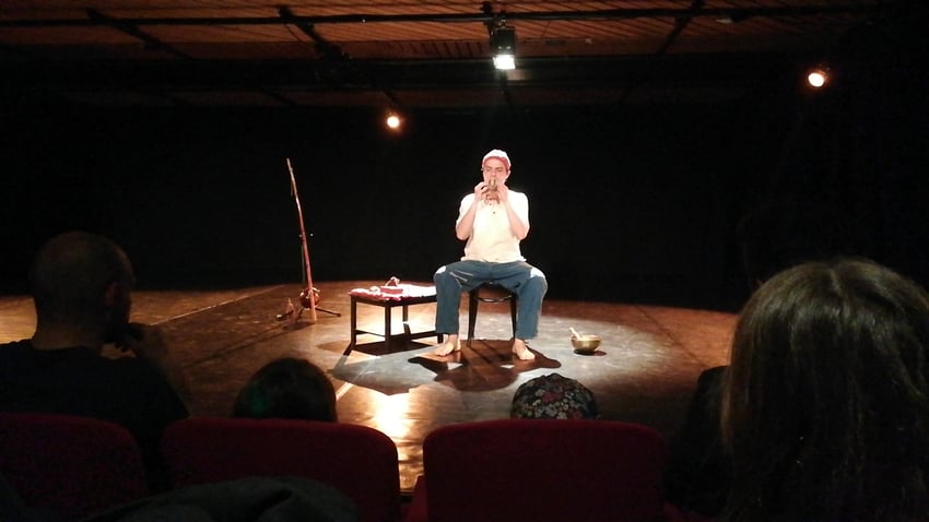 Tout ici se tresse et danse ensemble: impro théâtrale célébrant l'imprévu, philosophie et sagesse riante des contes, corps en mouvement, pleine présence et peinture franche. C'est une ode au Vivant, un remède formidable à la sinistrose ambiante administré avec bienveillance et humour! "